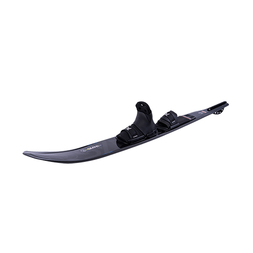 The Syndicate OMNI is where precision meets efficiency. Developed to enhance ski progression in the slalom course at all speeds, this hybrid-width crossover shape is built with our ultra-high performance Carbon Fiber PVC Core Construction. The Syndicate Omni's Flex-Frame provides increased torsional flex for the maneuverable feel of a traditional ski with the added speed & stability of a wideride ski. This allows the ski to twist creating tighter turns while added width provides the stable platform skiers need. The Omni was designed with a Hybrid Waist Width, halfway between those typically found in traditional skis and those in wideride skis. This provides for smooth instinctive turns at a wide range of speeds. Clean Edge Technology reduces drag 50% by allowing water to release cleanly off the bottom of the ski. This differs from conventional edges where water wraps around the bevel, up the sidewall and releases off the upper edge creating suction. The Clean Edge bevel-less tail offered in the Omni designs, Clean Edge 3.0, produces more acceleration with less skier input. In addition, we've enhanced stability by maintaining more bevel between the rear foot and fin. The result is a fast moving highly efficient ski with the handling required for tight line turns. HO Skis has taken the highly successful laminar textured ski base, SpeedSkin, and applied it directly to the carbon fiber base of the Syndicate skis! This Carbon Fiber SpeedSkin not only reduces ski drag/increases ski speed, it also reduces ski weight by 20% by eliminating the ski base graphic material.