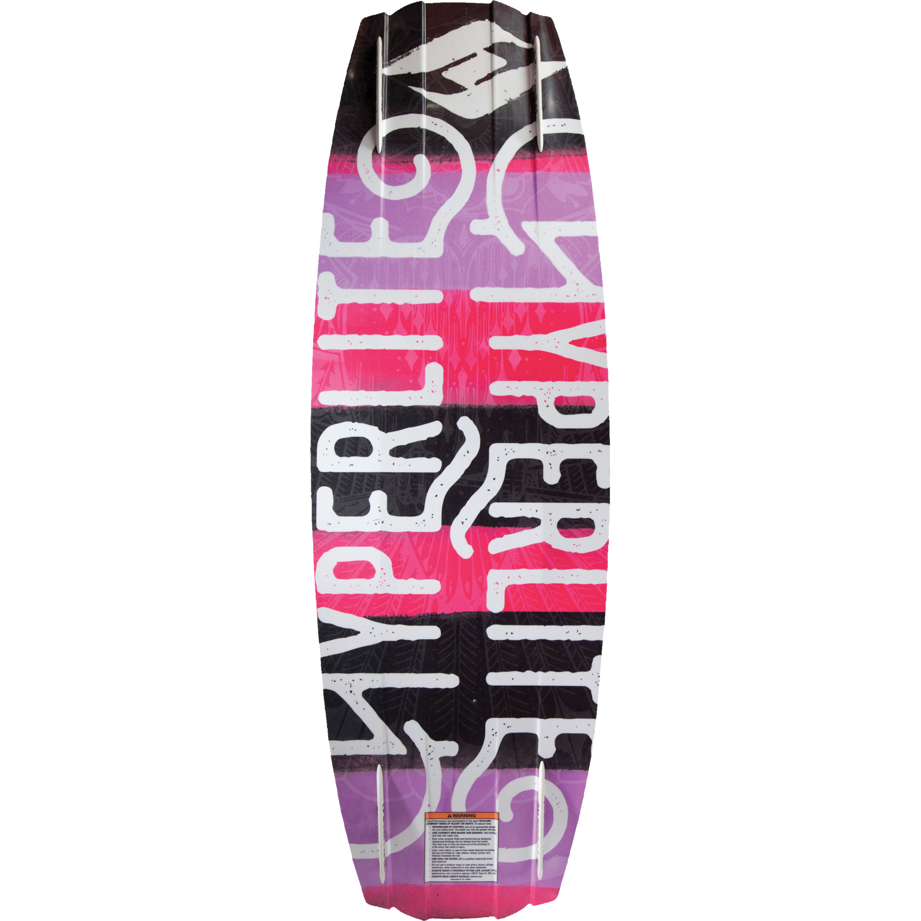 On the Maiden, Raimi has been slaying the competition, with 10 World Cup Titles & 2 World Championships to prove it! Creating the perfect shape for advanced female riders has always been important to Hyperlite. With the help of Raimi Merritt we have created just the board. The Maiden series features a continuous rocker that lays the foundation for a fast board that carves and edges with ease. The Maiden features innovative Tapered Channels narrow at the tip and tail aligning the Dual Fin Configuration to increase the board's edge hold on approach to the wake. This helps to deliver a pop off the wake like no other for any approach style. The thinner profile of the board and reduced tip and tail width minimize swing weight for simple rotation on fl at and inverted spins. Combine all of this with our women's specific Satin flex and Dual Molded Landing features and you have a deck perfect for a female ripper.