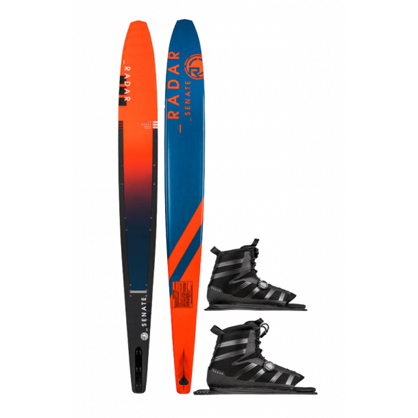The Senate's ability to carry speed is unmatched in the industry. This speed allows the skier to maintain width on the boat ultimately giving a sense of freedom sought after by those that ski in the course as well as those ripping open water turns. By taking our Vapor shape and adding two tenths of an inch in extra width we have created a stable riding platform. This platform creates the balance needed for a skier to feel at home. while the profile of the ski allows the skier to feel the speed and angle sought after at any level.